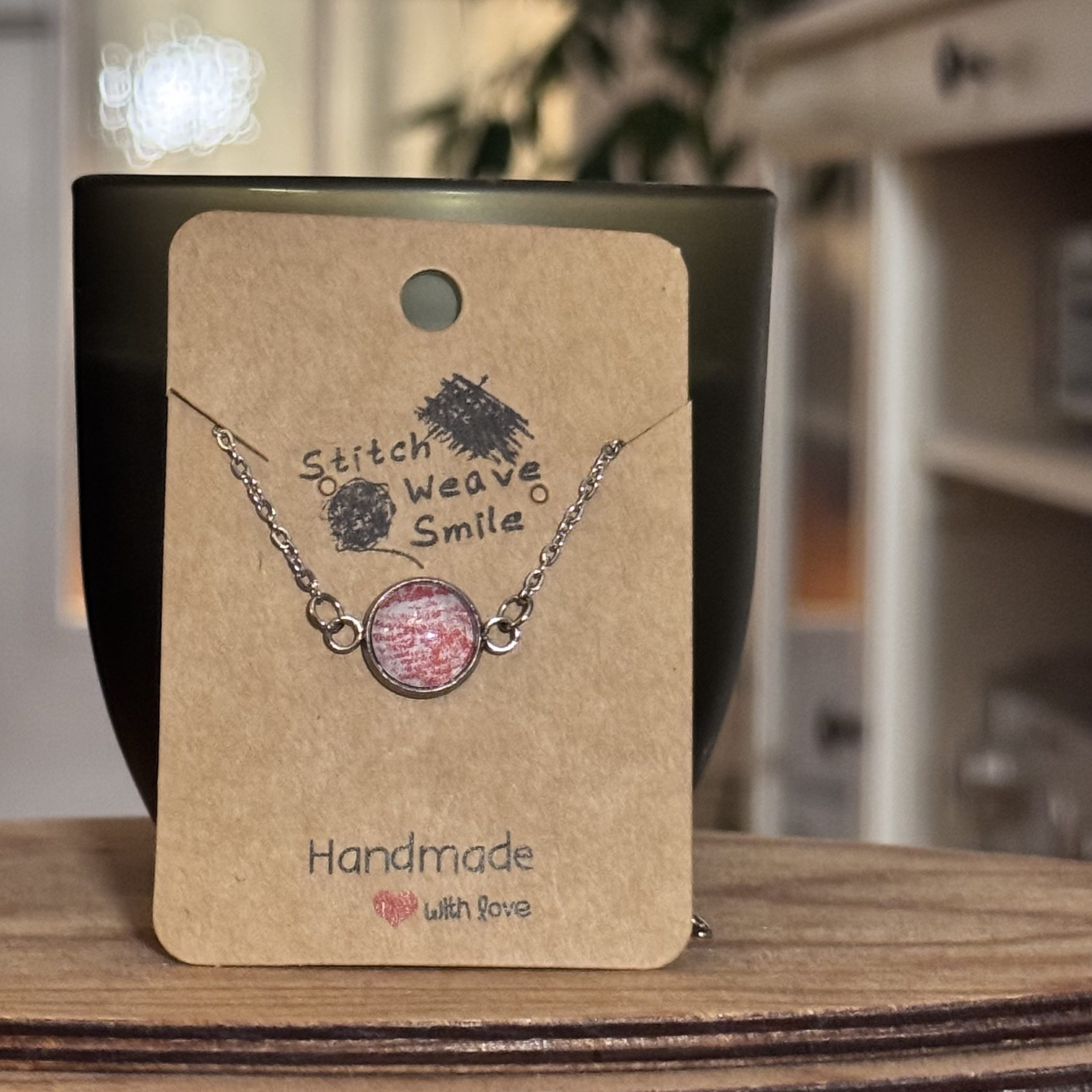 Handgefertigtes Armband mit Glas-Cabochon mit rotem Muster, handgedruckt