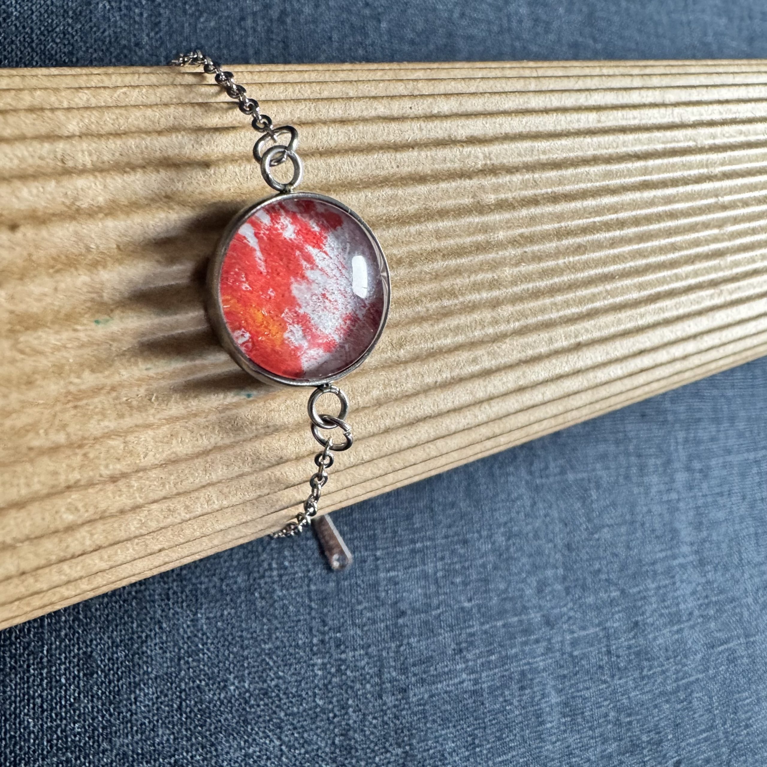 Armband mit Glas-Cabochon mit rotem Muster, handgedruckt
