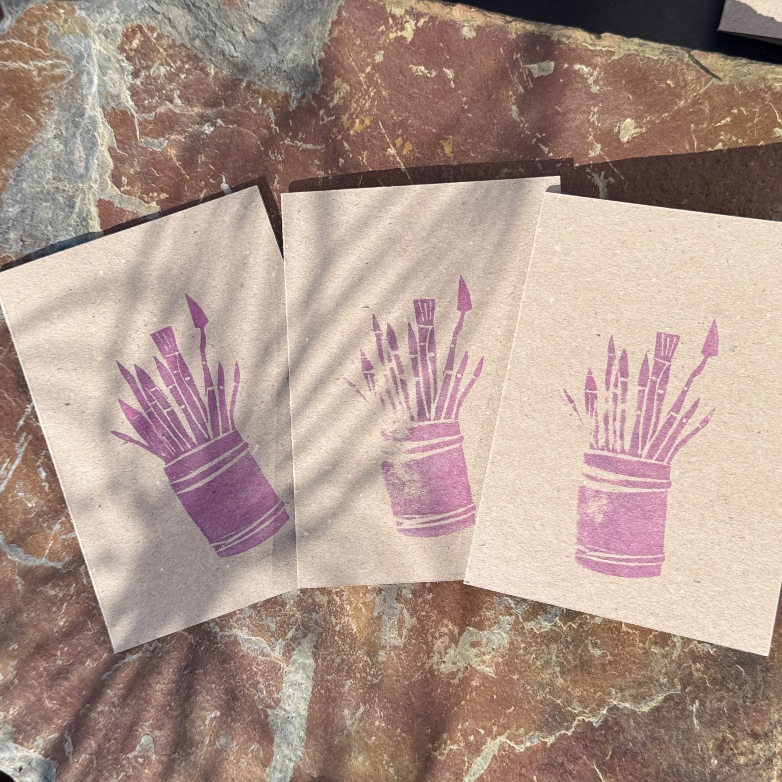 Grußkarte „Pinseltopf (lila), gestempelt auf Kraftpapier