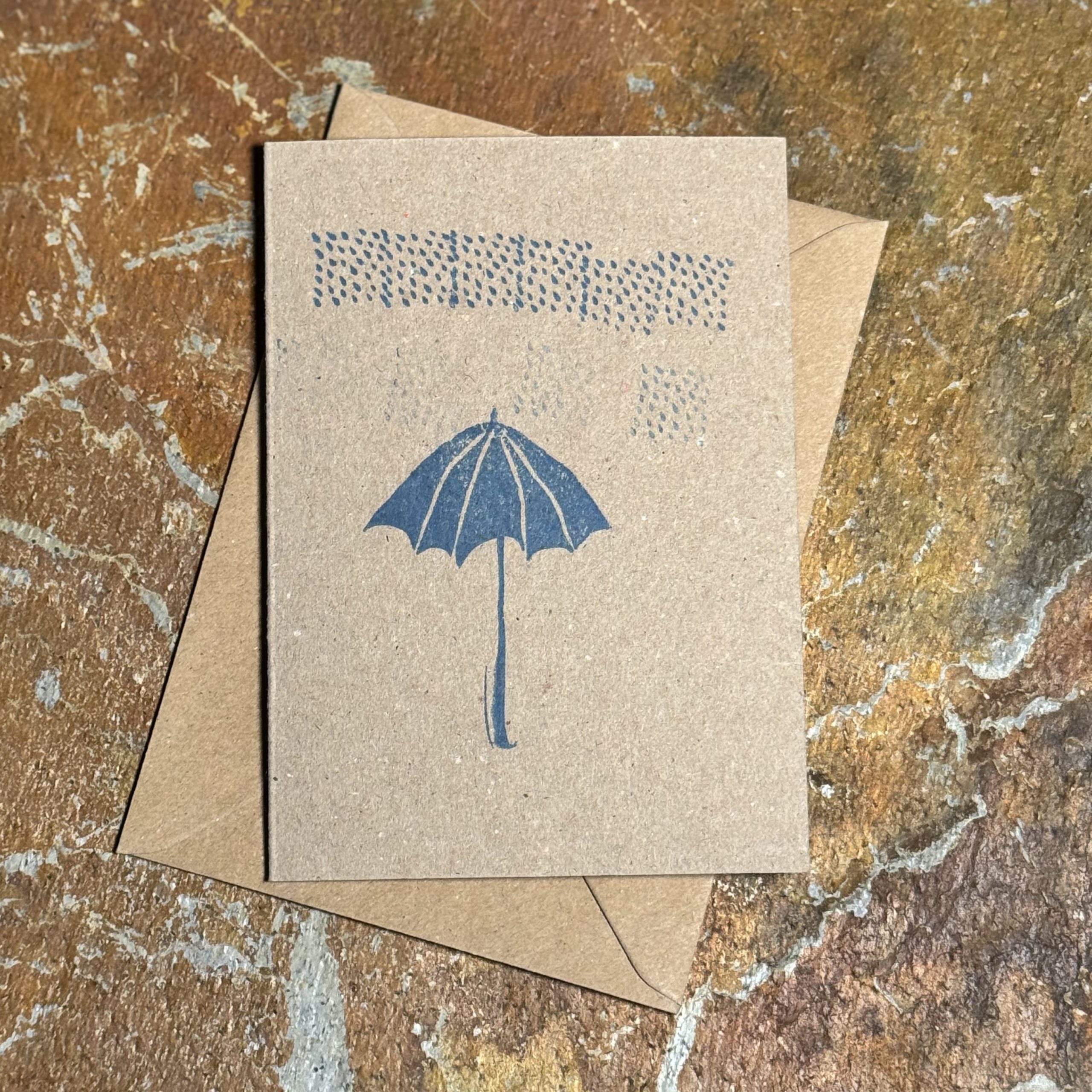 Grußkarte „Regenschirm“, gestempelt auf Kraftpapier