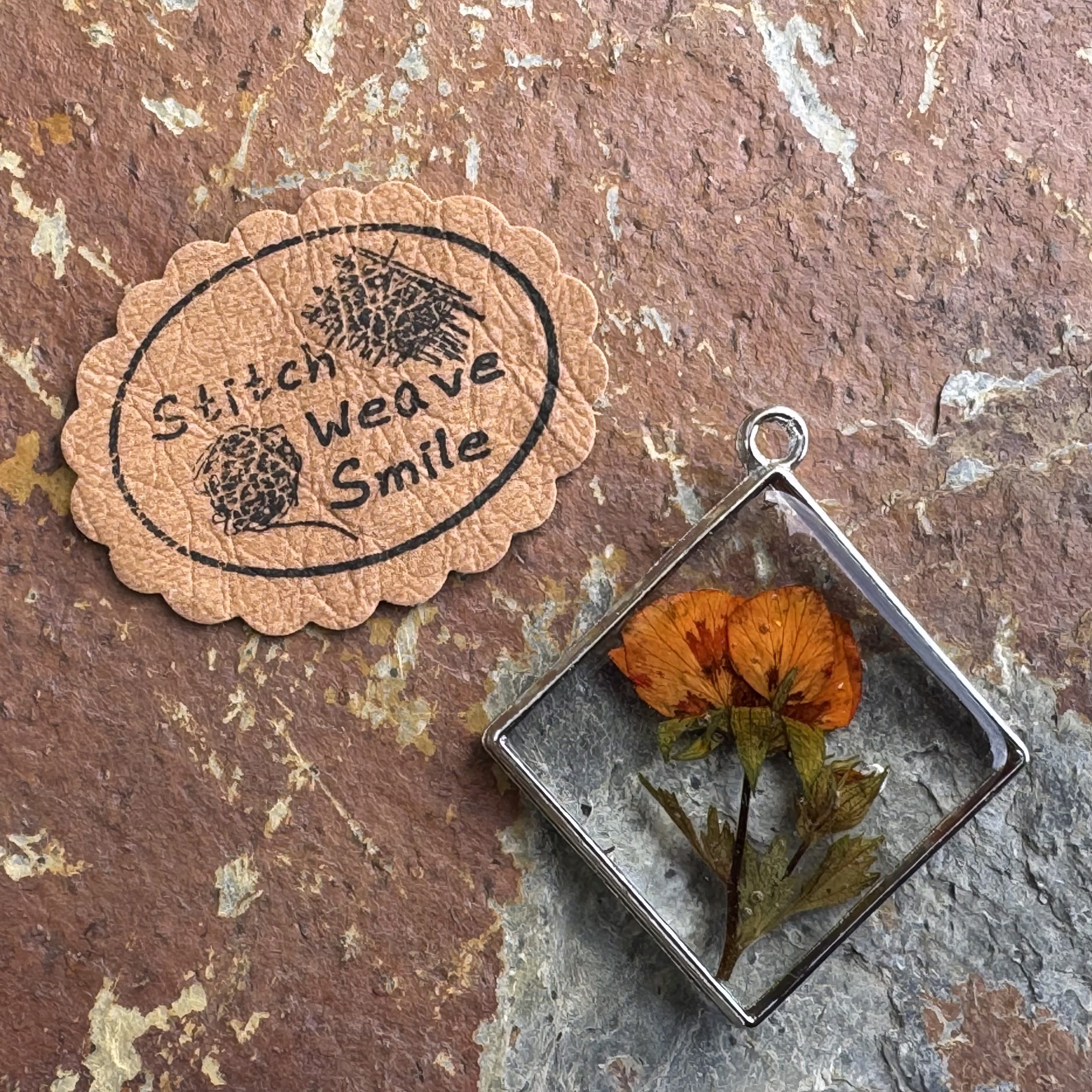 Handgefertigte Kette mit in UV Resin eingegossener orangener Trockenblume in silberfarbenem, rautenförmigem Rahmen. Ein Stück Natur für die Ewigkeit. Jedes Exemplar ist ein Unikat. Sicherheitshinweise: