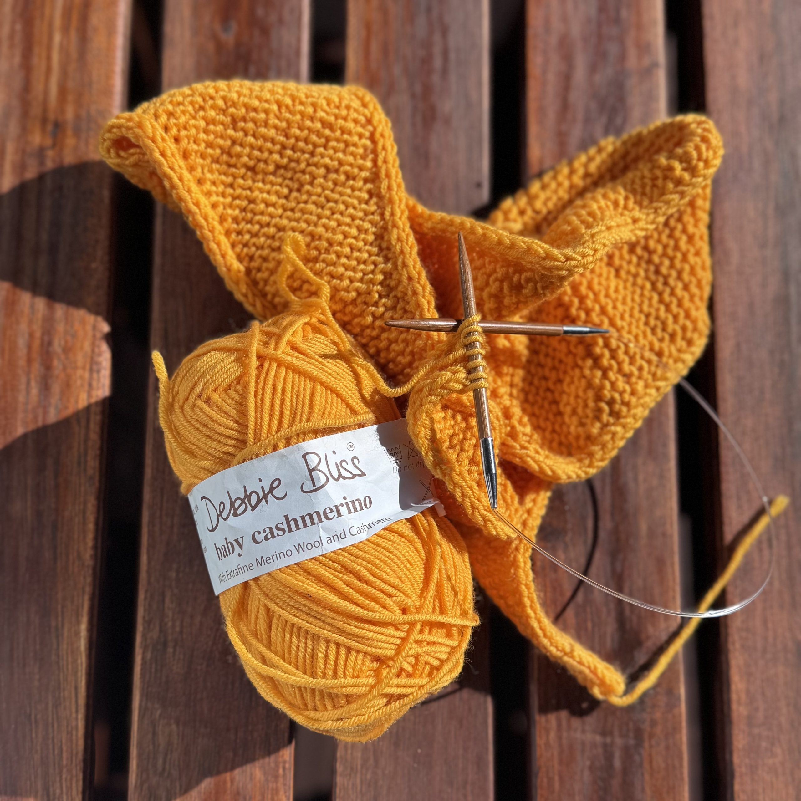 Handgestricktes Kleines Schaltuch aus Debbie Bliss baby cashmerino (gelb), ideal für die Übergangszeit oder als Accessoire.