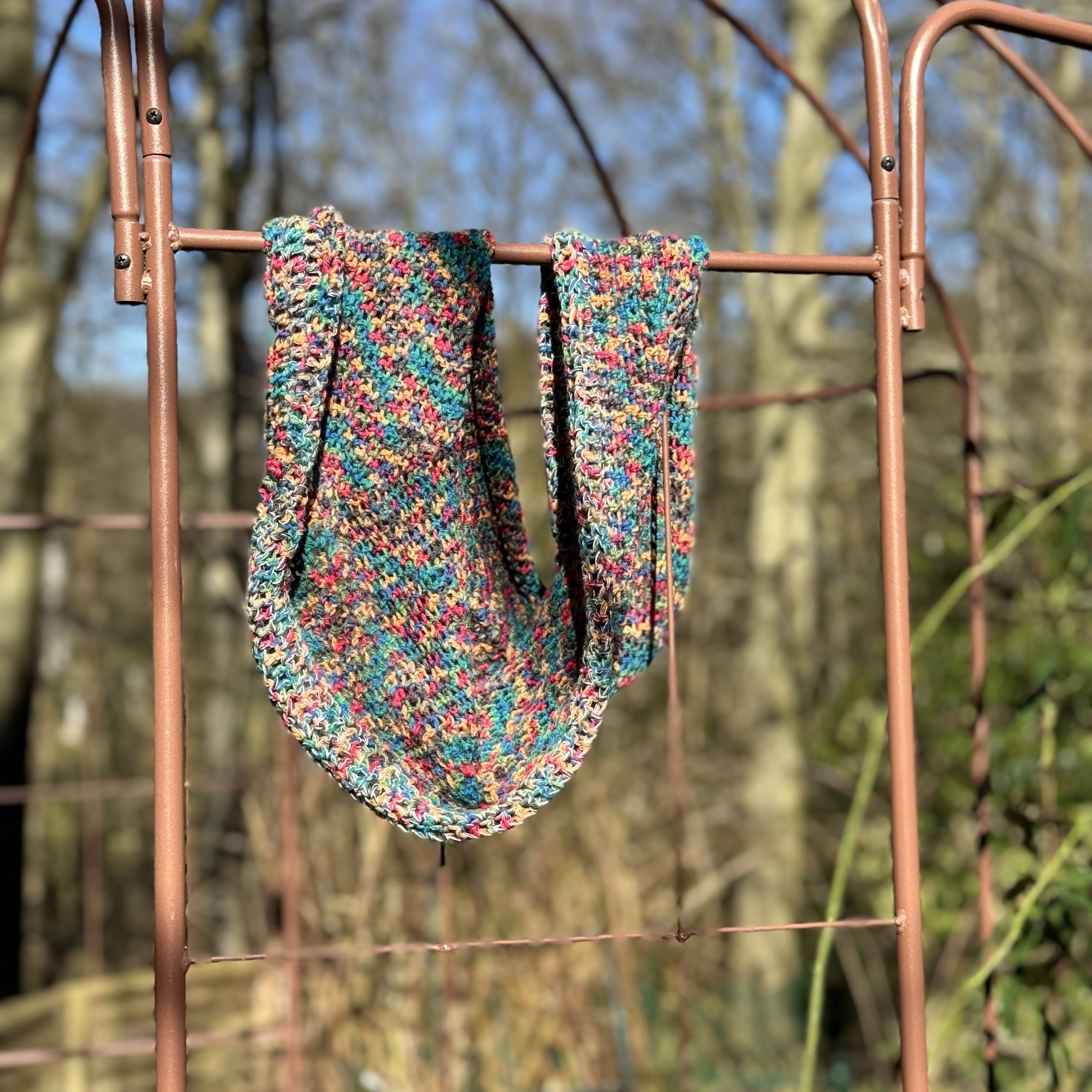 Handgestrickter Loop-Schal mit Farbverlauf in Herbstfarben, mit Reflektorfaden