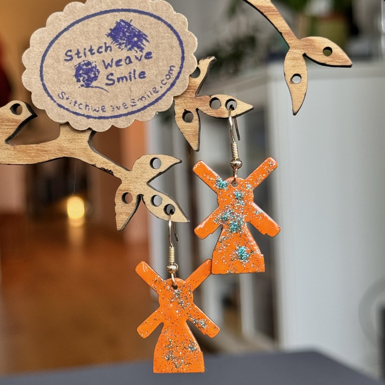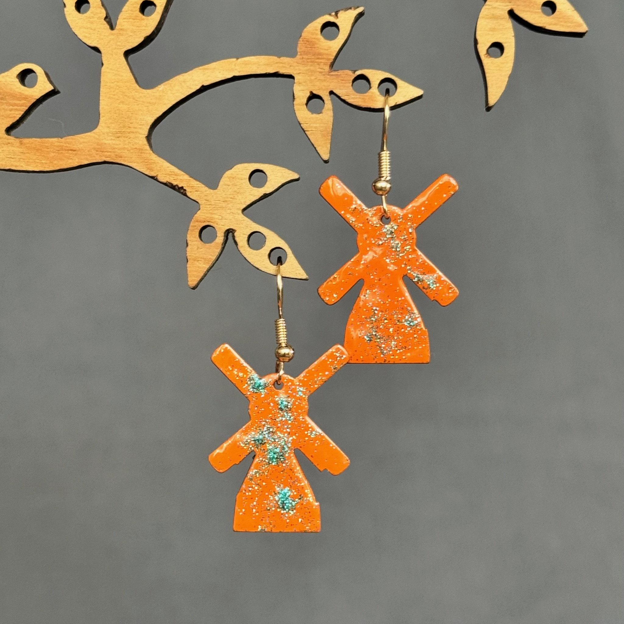 Ohrringe mit emailliertem Kupfer „Windmühlen“